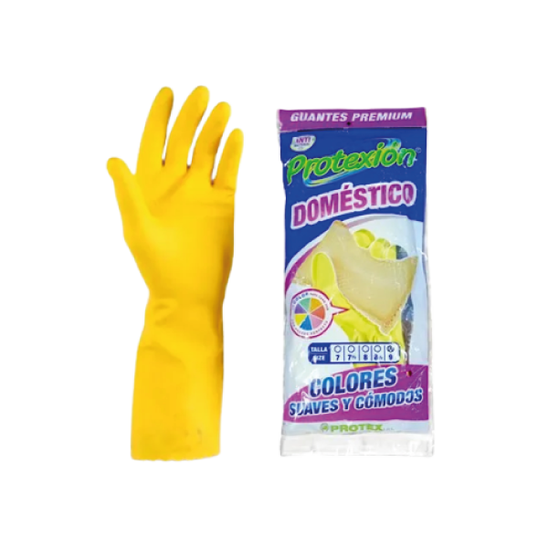Guante doméstico amarillo C18, elaborado de látex de caucho centrifugado.
