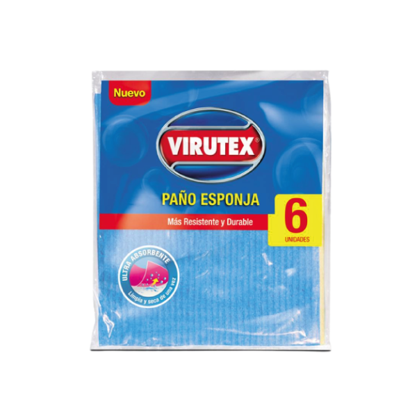 Paño esponja ultra absorbente elaborado de celulosa. Absorbe hasta 12 veces su peso en agua. Especial para eliminar la suciedad y enjuagar